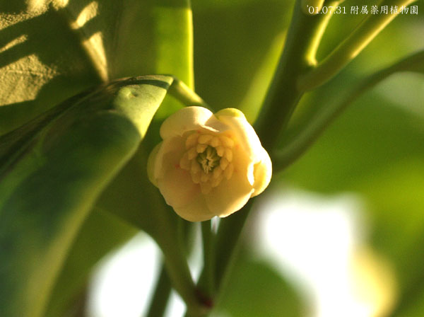 | この果実は大茴香、八角と呼ばれ、漢方で芳香性健胃薬・鎮痛薬として、腹満・嘔吐・寒疝腹痛・寒湿脚気などに用いられるが、現在は中国料理の香味料として用いられることがほとんどである。 茴香という名前は果実中に含まれる精油がウイキョウと同じであることから由来している。 花期は2〜3月と9〜10月の2回あり、花の色は黄白色〜深紅色まで色々あるが、紅いものの方が少ないようである。 |