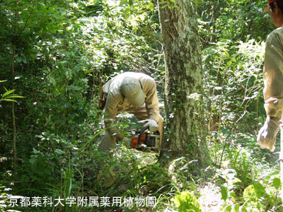 The mouth for stripping a bark is perpendicularly put in with a chain saw.