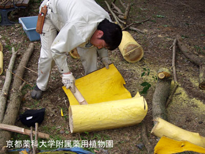 The bark was removed, and it became "OBAKU" as a result of drying it.