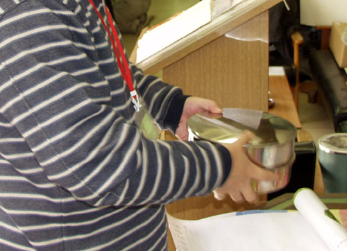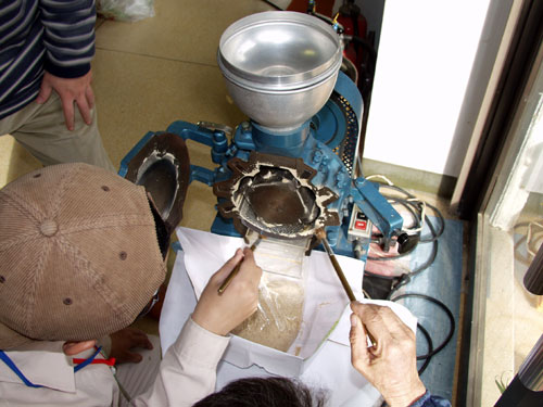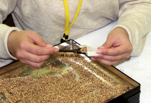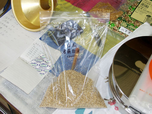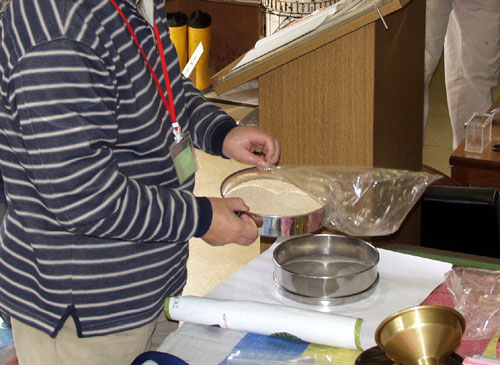 粉砕された生薬をふるいにかけ小さすぎる粉、大きすぎる粉を除きます