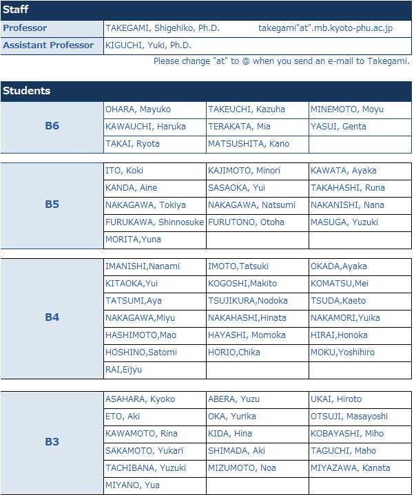 - Shigehiko Takegami, Keisuke Kitamura, Mayuko Ohsugi, Aya Ito, Tatsuya Kitade: