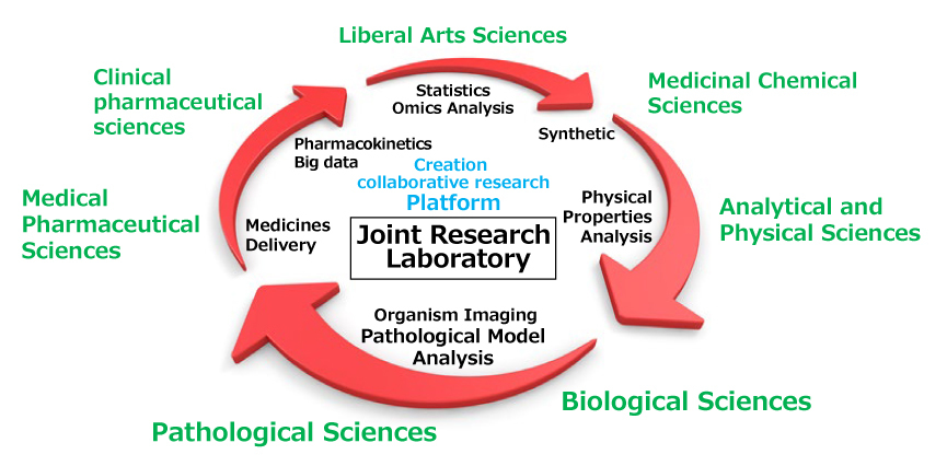 Under the motto of "Creation of next-generation medicine from the discovery of new life phenomena," Joint Research Laboratory (formerly Division of Integrated Pharmaceutical Sciences) aims to develop new treatments for intractable diseases such as psychiatric and neurological disorders, lifestyle-related diseases, and cancer by building an interdisciplinary research platform and promoting joint research within and outside the university.
