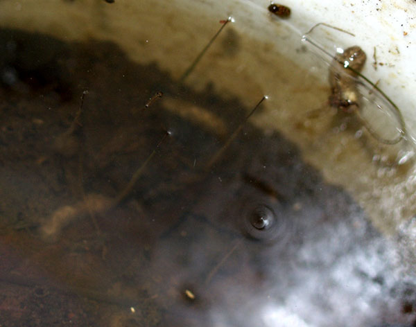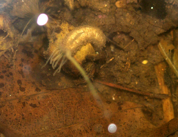 Mail contribution with the kinder living thing of the bottom discovered by the drain of this botanical garden showed that it May be the larva of HANAABU.