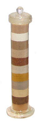それを一定量ずつ筒状のガラス容器に入れて層の柱を作ったもの。