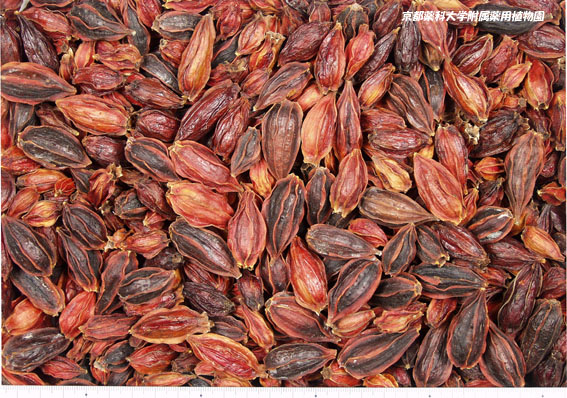 | 薬効・用途 | 消炎、止血、鎮静、胆汁分泌促進などを目的とした漢方方剤に処方される。 また、粉末を黄檗末等と合わせて酢で練り、打撲症等に外用する。 食品用色素として広く利用される。 |